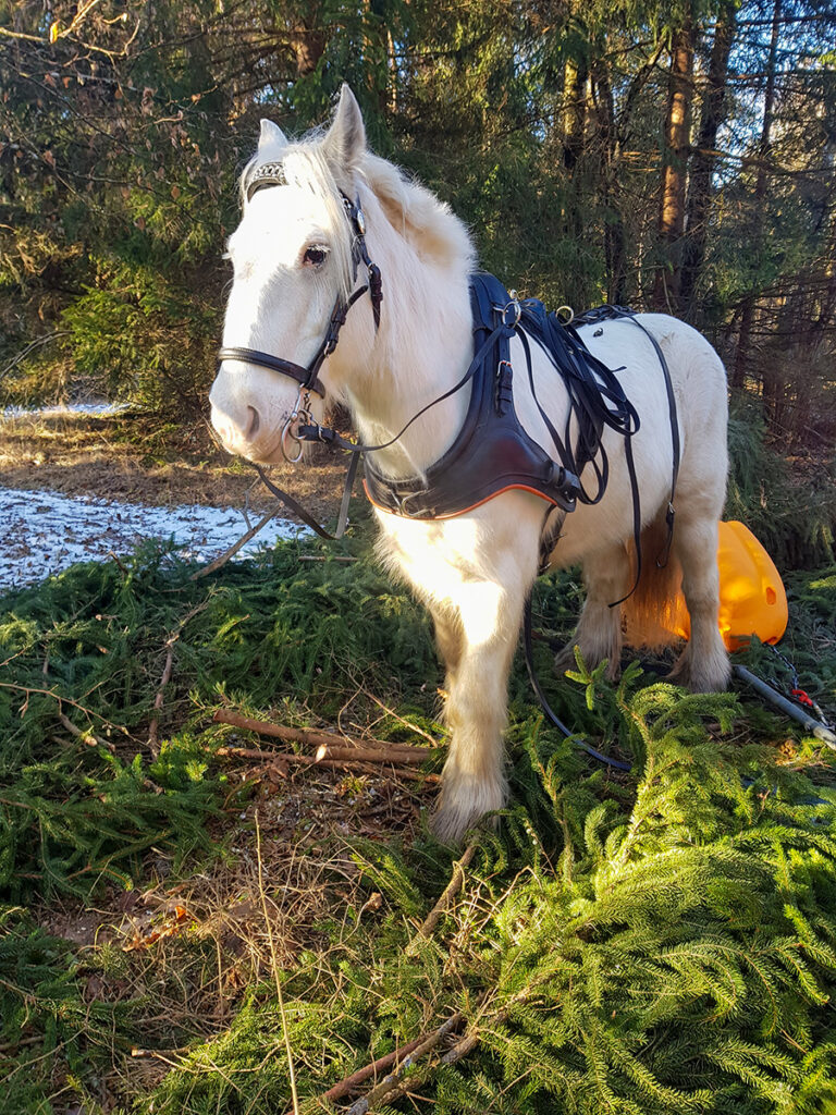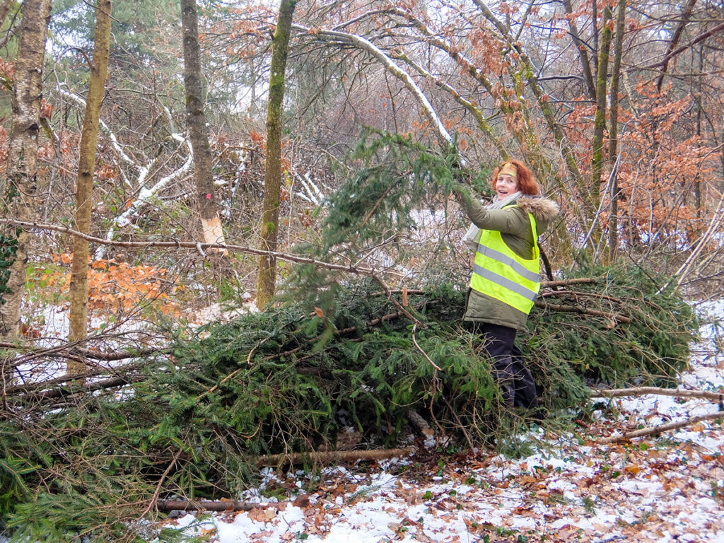 Ende Januar 2026 wurden 50 Konkurrenzbäume gefällt, v.a. kurzlebige oder nicht mehr sehr vitale Fichten und Kiefern. Während die gefällten Laubbäume als liegende Torsi auf dem Gelände bleiben, wurden die Nadelbäume mit zwei Rückepferden bodenschonend aus dem Wald gezogen. Da die Qualität der Stämme eine stoffliche Verwendung als Bauholz nicht zulässt, werden sie zu Brennholz und Holzhäcksel.