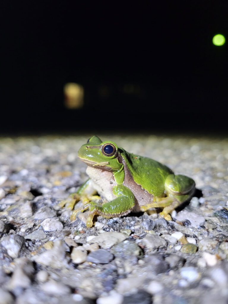Sind die Voraussetzungen entsprechend, schwirren auch wir „Krötenretter“ aus. Wetterfest eingepackt und ausgestattet mit Warnwesten zum Eigenschutz, Eimer, Handschuhen und Taschenlampe laufen wir unsere Strecken ab. Jedes gefundene Tier tragen wir vorsichtig über die Straße und bringen es in Sicherheit. In der Regel gehen pro Abend zwei bis drei Stunden drauf. Je nach Wetterlage und Erfolgsquote sind die abendlichen Rundgänge mehr oder weniger erfreulich. Wenn wir vielen Tieren helfen können, sind wir beglückt, wenn wir allerdings auf zahlreiche bereits überfahrene Amphibien stoßen, sind wir eher frustriert.